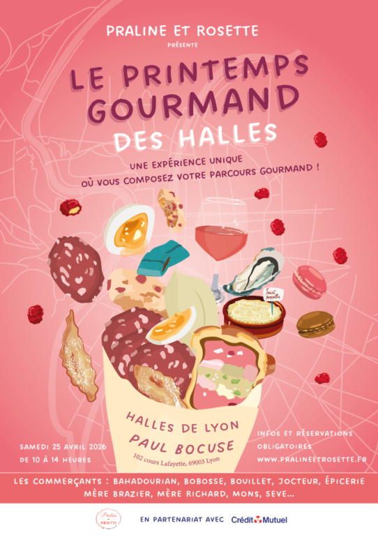 Audrey Marcelino, fondatrice de Praline et Rosette, présentera un événement inédit aux Halles de Lyon Paul Bocuse le 25 avril prochain de 10h à 14h. Ce sera l'occasion pour les amoureux de la gastronomie de venir passer un moment convivial autour de produits d'exception.